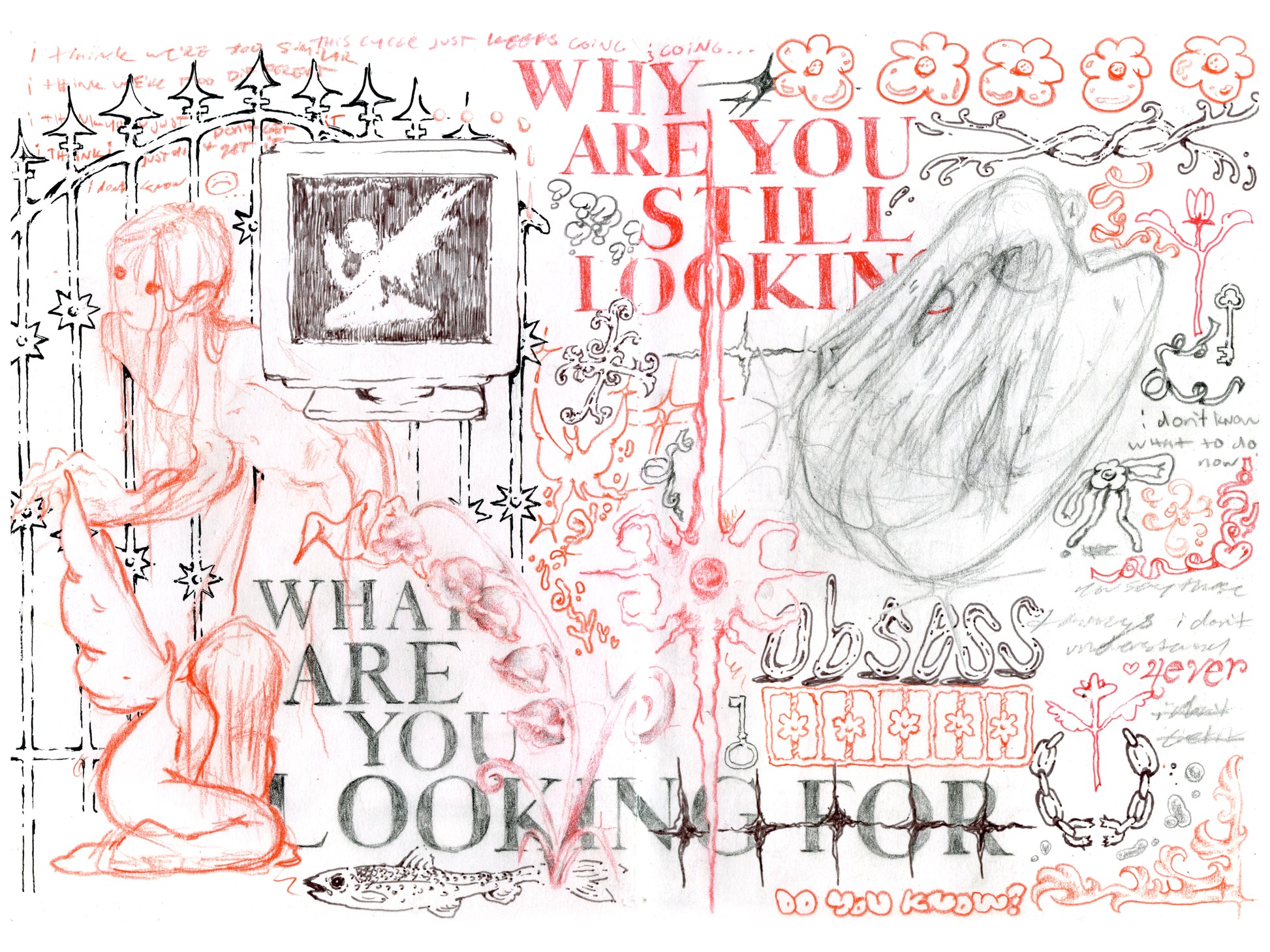 9 x 12 in. semi-gloss color print of a sketchbook spread from may 2025 <3